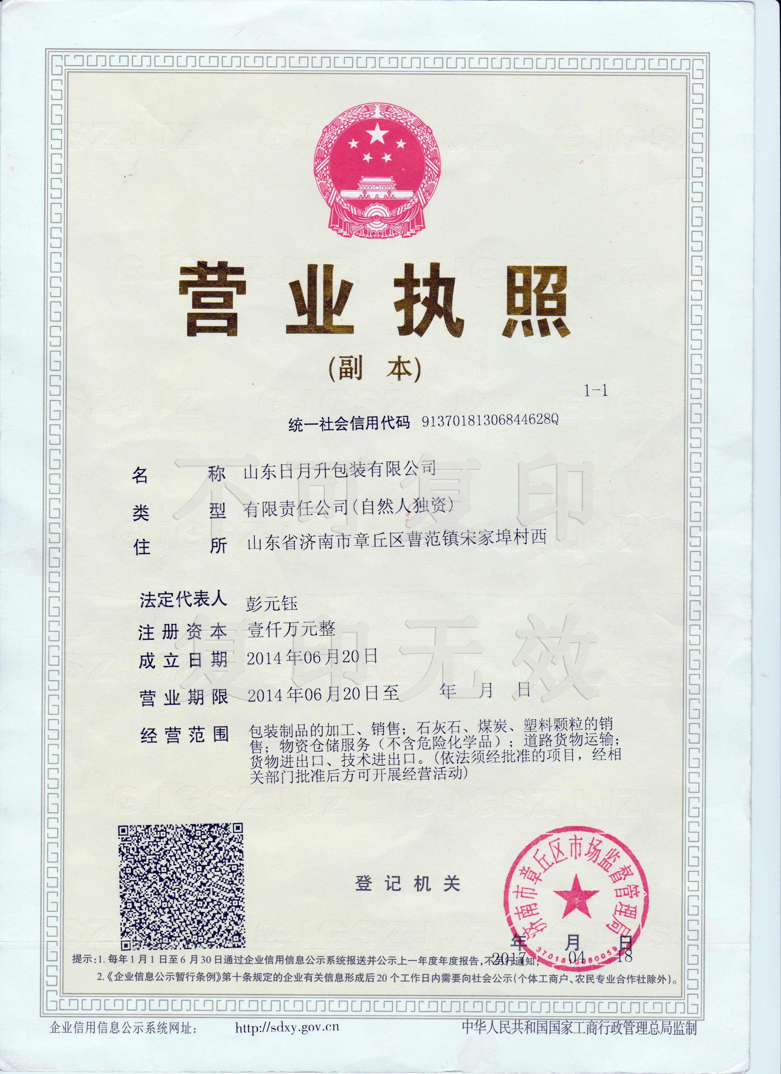 山東日月升包裝有限公司是一家噸袋廠家,集裝袋廠家,噸包袋廠家,噸包廠家,主營噸袋,肥料噸袋,化工用噸袋,面粉噸袋,廢料回收噸包,工廠用噸袋,公司采用先進的自動生產線,工藝精湛,集生產批發銷售為一體,質量保障,公司占地面積30畝,注冊資金人民幣1000萬元,年生產各種規格集裝袋100多萬條。擁有全套生產設備,從拉絲、織帶、織布、縫制到成品實現配套生產,具備保證產品質量的全套測試方法及設備??缮a類型普通集裝袋,衛生袋,抗老化袋,抗靜電袋,導電袋,隔片袋等。公司產品...
